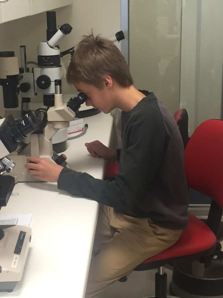 Patrick looking at the cells under the microscope